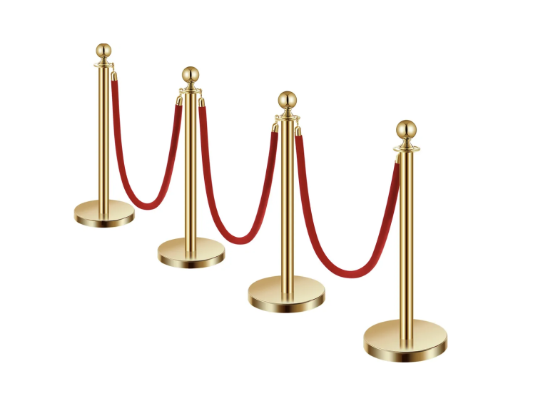 Elegante Absperrsysteme in Gold mit roter Kordel für stilvolle Eingangsbereiche, VIP-Zonen oder besondere Eventflächen. Unsere Tensatoren setzen gezielte Akzente und verleihen Hochzeiten, Galas oder exklusiven Feiern eine hochwertige und professionelle Atmosphäre.